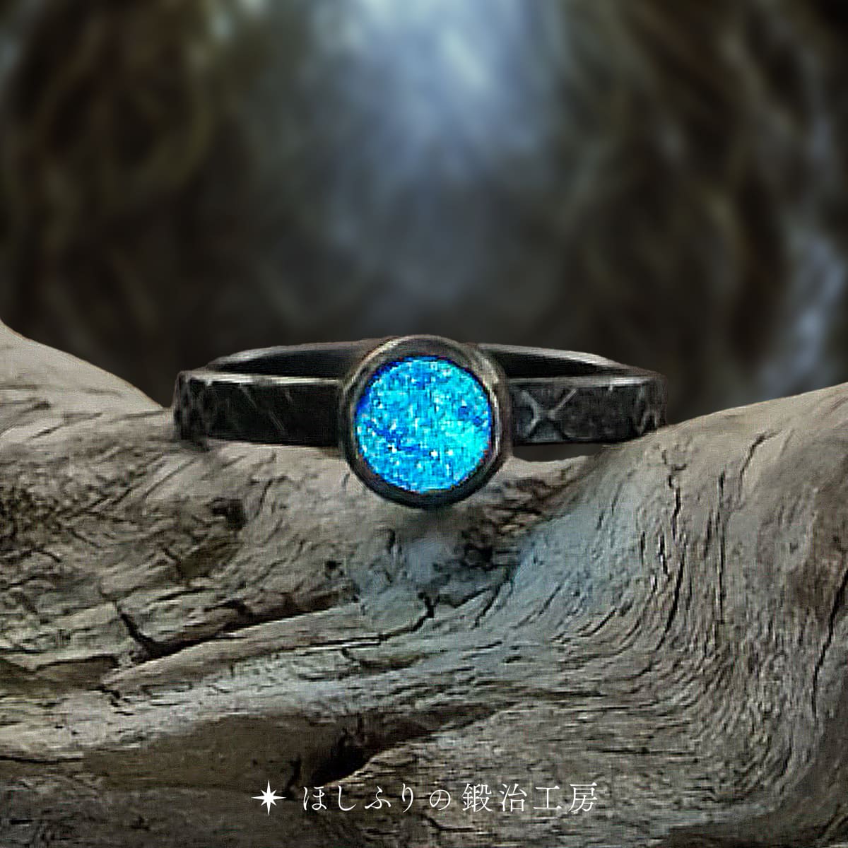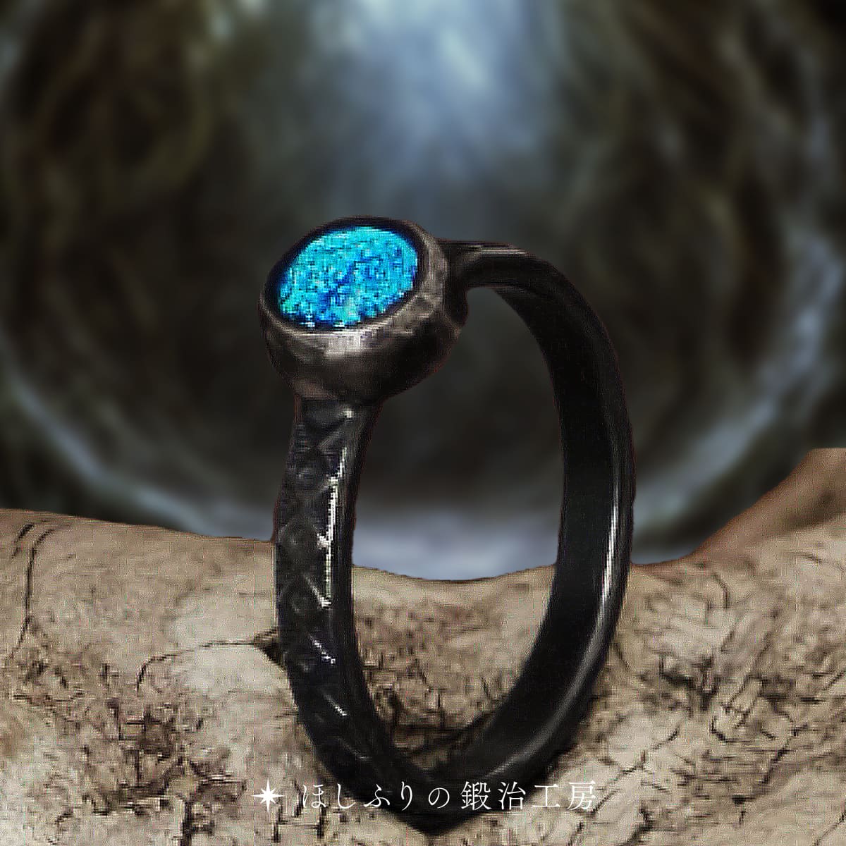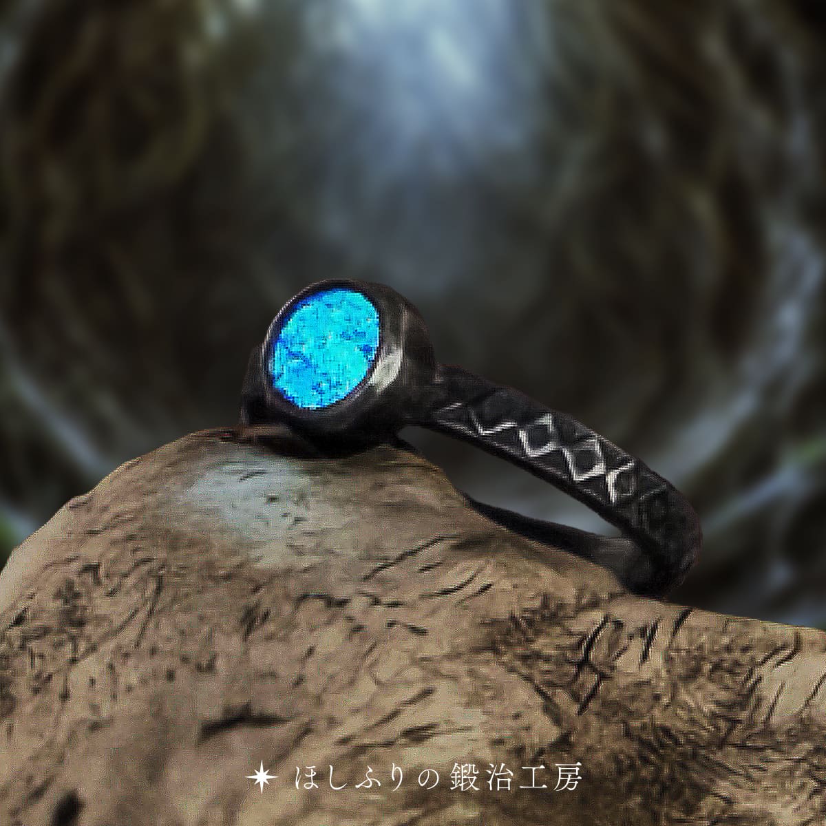 鍛え上げられた直後の指輪は、銀の表面が黒く沈み、古代遺物のような哀愁をまとう。